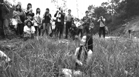 第三届前提行为艺术节近日在广东清远牛鱼嘴原始生态区举行,仅开幕两天内迎来了上万观众,因为现在的行为艺术家作品不再远离大众,而变得越来越贴近生活,比如艺术家潘育川表演的作品《黑幕》,通过烧黑幕和足球来抨击足协,这使得更多普通老百姓也能看懂,因此受到不少人追捧。而艺术节的不少作品还是和环保有关,而且极具互动性。艺术家流野的《为艺术活动义务清洁》,现场发动观众身穿“新款”环卫工作服打扫周围垃圾。而争议极大的裸体行为艺术家海容天天也再度出山,她身着各色布条,胸前挂着四五个扩音器一路狂奔,随后媒体、观众近百人紧跟其后。在跑动的过程中,她褪去自认是累赘的衣物,最后一丝不挂地坐在河边,不紧不慢唱起歌来。“我们的祖国是花园,花园的花朵真鲜艳”,现场观众随即和海容天天大合唱,更有人义务笛子伴奏。这个提议“用身体感受生存环境,从自身做起,远离不良生活方式”的作品结束后,现场观众送给她热烈掌声。