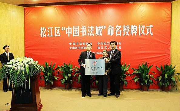 2012年11月20日上午,在全国上下认真贯彻落实党的十八大精神的日子里,上海市松江区“中国书法城”命名授牌仪式在松江美术馆隆重举行。中国书协分党组书记、驻会副主席赵长青;中国书协顾问周慧珺;中国书协原分党组成员、副秘书长戴志祺;中国书协展览部主任刘恒;松江区委书记盛亚飞;上海市文联副主席迟志刚;上海市书协主席周志高;松江区委常委、副秘书长杨峥;区委常委、宣传部长谢巍;上海市书协副主席兼秘书长戴小京以及上海市书协主席团成员和松江区书法爱好者400余人参加了授牌活动。